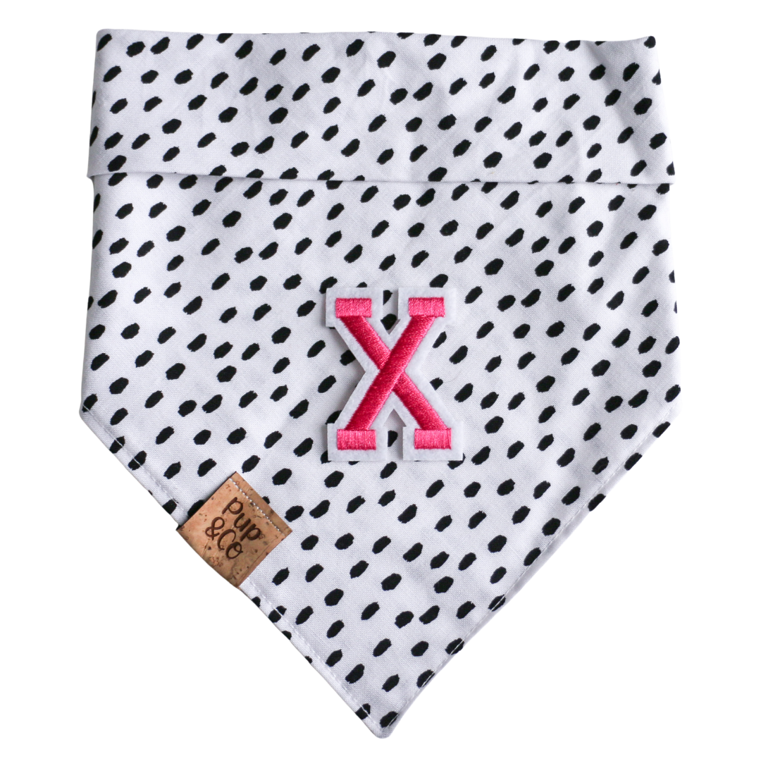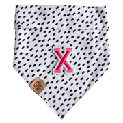 Choose a letter to add to any of our bandanas! Perfect to customize any of our products for your fur baby! Pick one letter from the options and then specify which bandana print you would like us to add it to in the "bandana print name" box.
