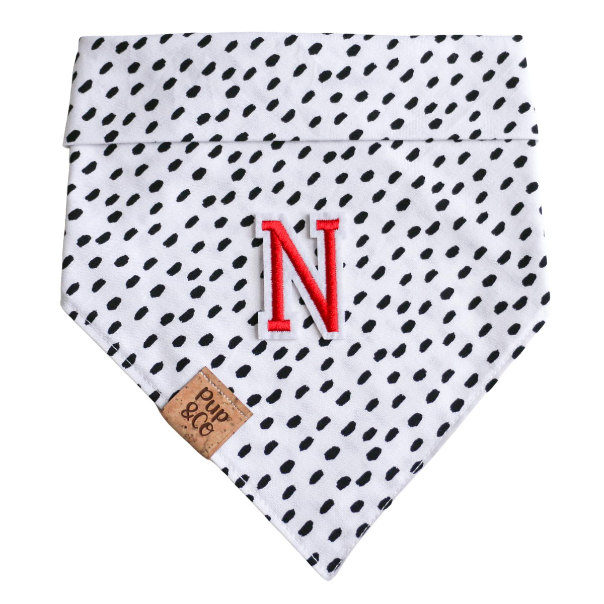 Choose a letter to add to any of our bandanas! Perfect to customize any of our products for your fur baby! Pick one letter from the options and then specify which bandana print you would like us to add it to in the "bandana print name" box.