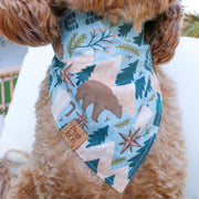 Measure your pup's neck before purchasing to ensure the proper sizing and fit. If your pup is fluffier or between sizes, consider sizing up for the best fit. If the bandana is a bit larger, fold down the top end as many times as necessary before tying it on. All of our bandanas come with an extra 3-4 inches of fabric from the "Up to # Neck" size to ensure the best knot when tying your bandana. Or we have the option to snap to secure the bandana. You could also tie the bandana once and snap to be extra secure.