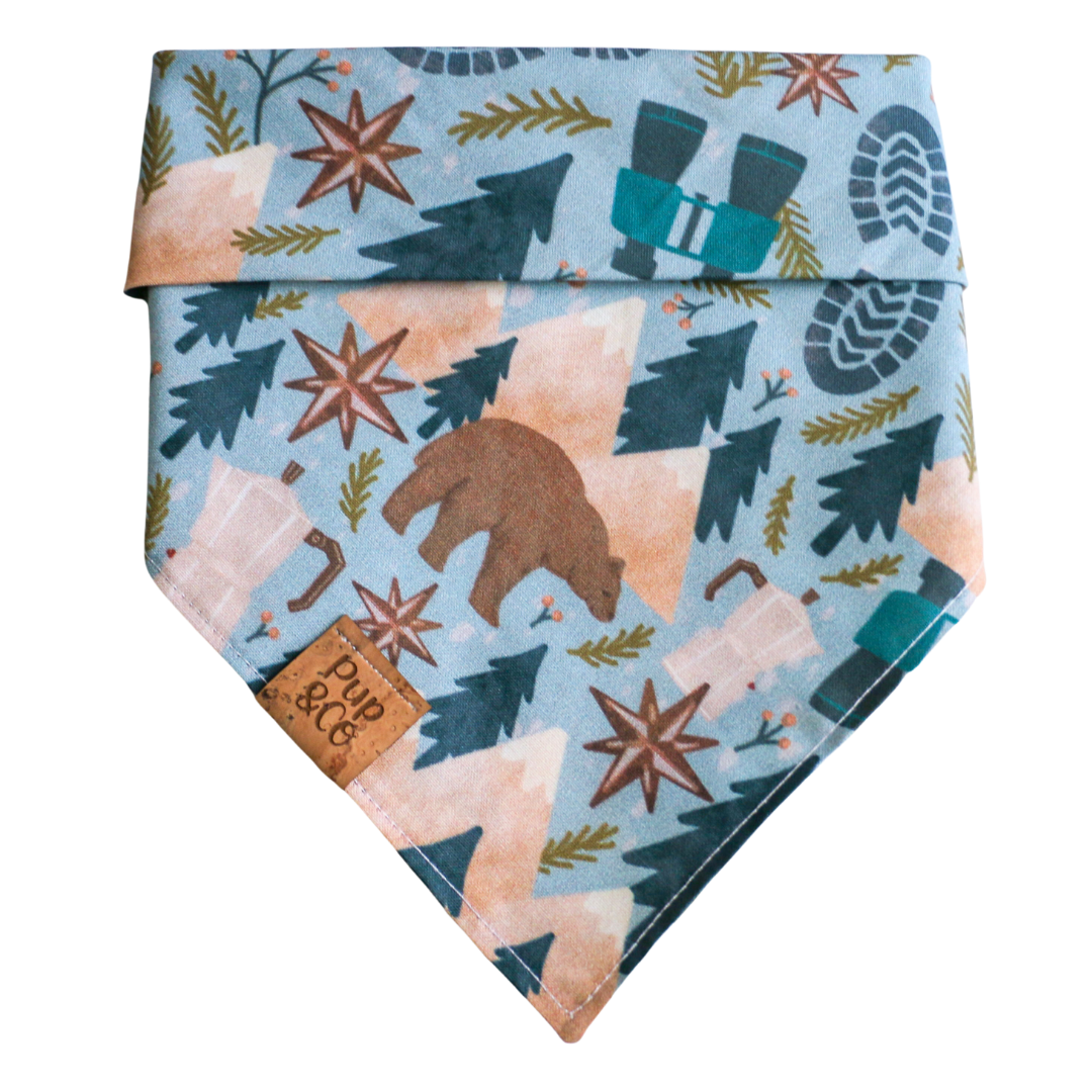 All of our bandanas are handmade with love from Arizona and quality assurance checked by our puppy Goldie. Our bandanas are triangle in shape and are meant to be knotted at the back around your pups neck or snapped. Please check out our size guide to find the perfect fit for your pup. Every bandana is 100% cotton and come with our Pup & Co. label.