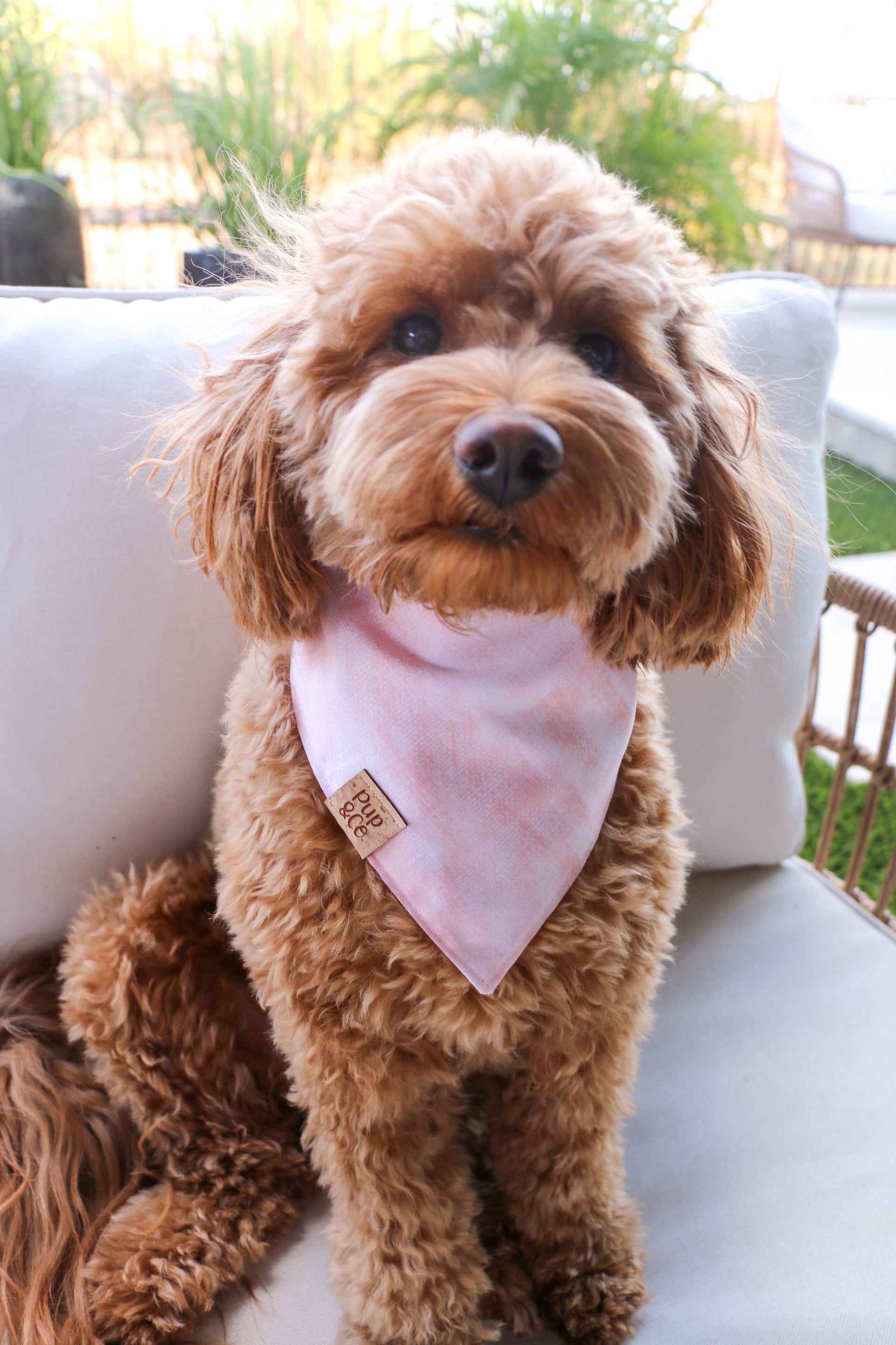 All of our bandanas are handmade with love from Arizona and quality assurance checked by our puppy Goldie. Our bandanas are triangle in shape and are meant to be knotted at the back around your pups neck or snapped. Please check out our size guide to find the perfect fit for your pup. Every bandana is 100% cotton and comes with our Pup & Co. label.