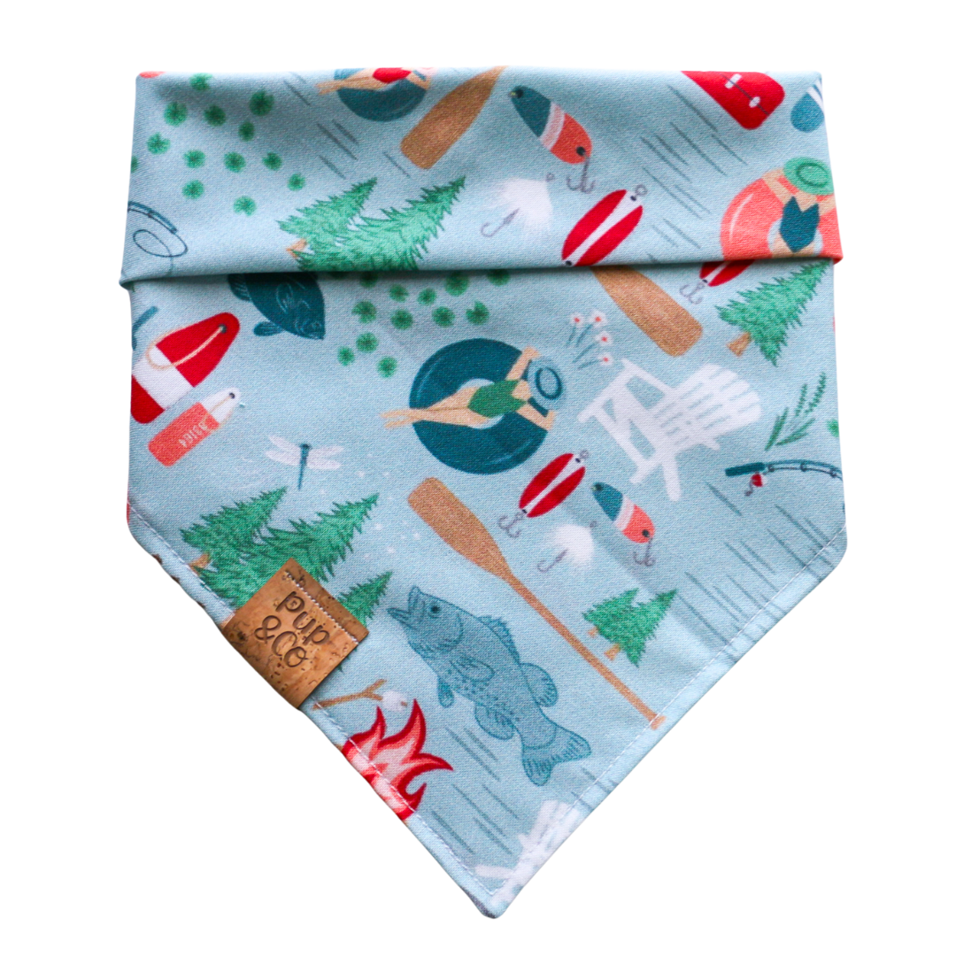 Please remember to always supervise your dog while wearing our bandanas. The cork tag can be chewed and torn and the snaps can be eaten and pose a choking hazard if removed from the bandana.