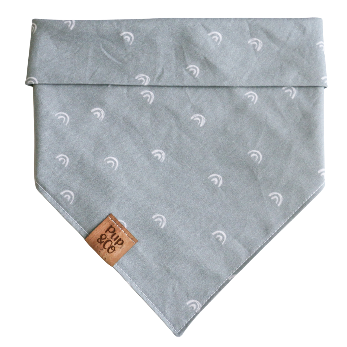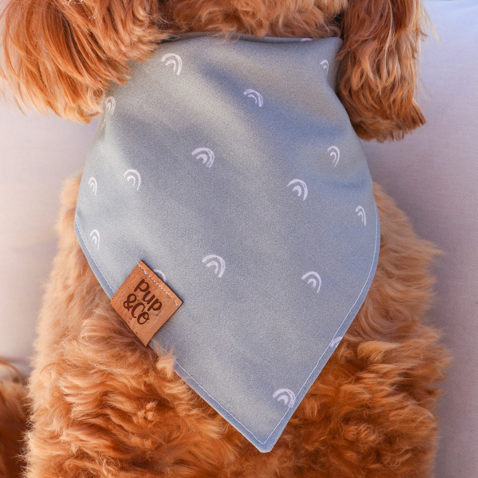 All of our bandanas are handmade with love from Arizona and quality assurance checked by our puppy Goldie. Our bandanas are triangle in shape and are meant to be knotted at the back around your pups neck or snapped. Please check out our size guide to find the perfect fit for your pup. Every bandana is 100% cotton and comes with our Pup & Co. label.