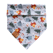Measure your pup's neck before purchasing to ensure the proper sizing and fit. If your pup is fluffier or between sizes, consider sizing up for the best fit. If the bandana is a bit larger, fold down the top end as many times as necessary before tying it on. All of our bandanas come with an extra 3-4 inches of fabric from the "Up to # Neck" size to ensure the best knot when tying your bandana. Or we have the option to snap to secure the bandana. You could also tie the bandana once and snap to be extra secure.