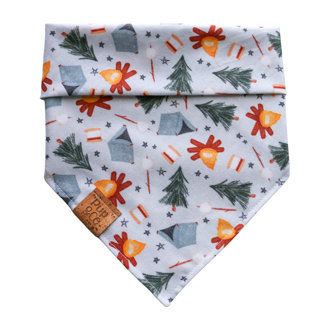 All of our bandanas are handmade with love from Arizona and quality assurance checked by our puppy Goldie. Our bandanas are triangle in shape and are meant to be knotted at the back around your pups neck or snapped. Please check out our size guide to find the perfect fit for your pup. Every bandana is 100% cotton and come with our Pup & Co. label.