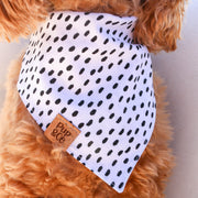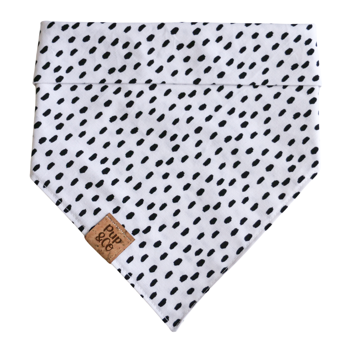 All of our bandanas are handmade with love from Arizona and quality assurance checked by our puppy Goldie. Our bandanas are triangle in shape and are meant to be knotted at the back around your pups neck or snapped. Please check out our size guide to find the perfect fit for your pup. Every bandana is 100% cotton and comes with our Pup & Co. label.