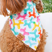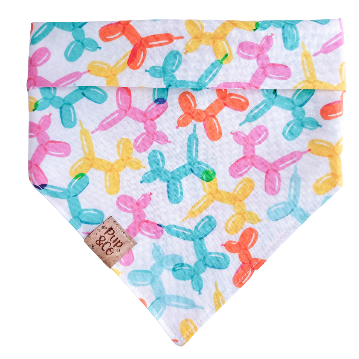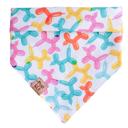 Measure your pup's neck before purchasing to ensure the proper sizing and fit. If your pup is fluffier or between sizes, consider sizing up for the best fit. If the bandana is a bit larger, fold down the top end as many times as necessary before tying it on. All of our bandanas come with an extra 3-4 inches of fabric from the "Up to # Neck" size to ensure the best knot when tying your bandana. Or we have the option to snap to secure the bandana. You could also tie the bandana once and snap to be extra secure.
