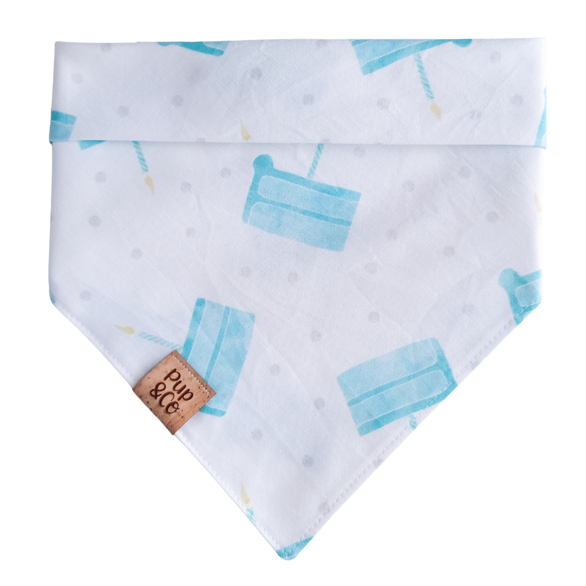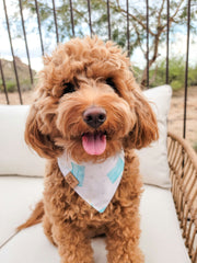 All of our bandanas are handmade with love from Arizona and quality assurance checked by our puppy Goldie. Our bandanas are triangle in shape and are meant to be knotted at the back around your pups neck or snapped. Please check out our size guide to find the perfect fit for your pup. Every bandana is 100% cotton and comes with our Pup & Co. label.