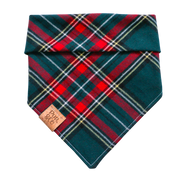 Measure your pup's neck before purchasing to ensure the proper sizing and fit. If your pup is fluffier or between sizes, consider sizing up for the best fit. If the bandana is a bit larger, fold down the top end as many times as necessary before tying it on. All of our bandanas come with an extra 3-4 inches of fabric from the "Up to # Neck" size to ensure the best knot when tying your bandana. Or we have the option to snap to secure the bandana. You could also tie the bandana once and snap to be extra secure.