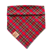 Measure your pup's neck before purchasing to ensure the proper sizing and fit. If your pup is fluffier or between sizes, consider sizing up for the best fit. If the bandana is a bit larger, fold down the top end as many times as necessary before tying it on. All of our bandanas come with an extra 3-4 inches of fabric from the "Up to # Neck" size to ensure the best knot when tying your bandana. Or we have the option to snap to secure the bandana. You could also tie the bandana once and snap to be extra secure.