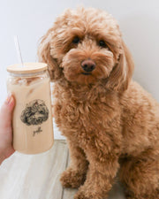 This 16oz beer can glass comes with a personalized custom outlined sketch of your fur baby.  If you have two pets they will go on either side. Max of two pets only. A straw and bamboo lid is included with each glass.