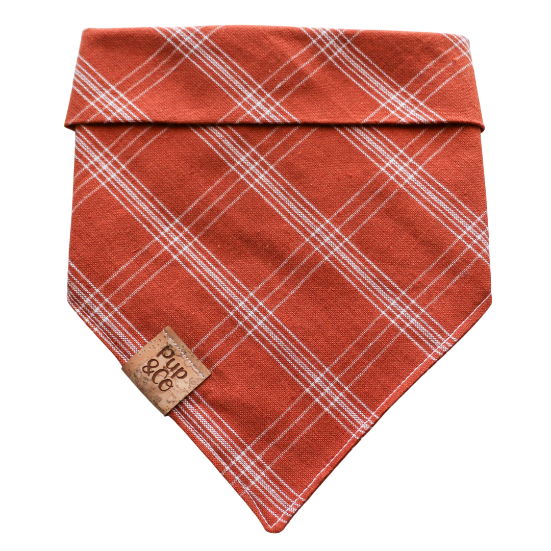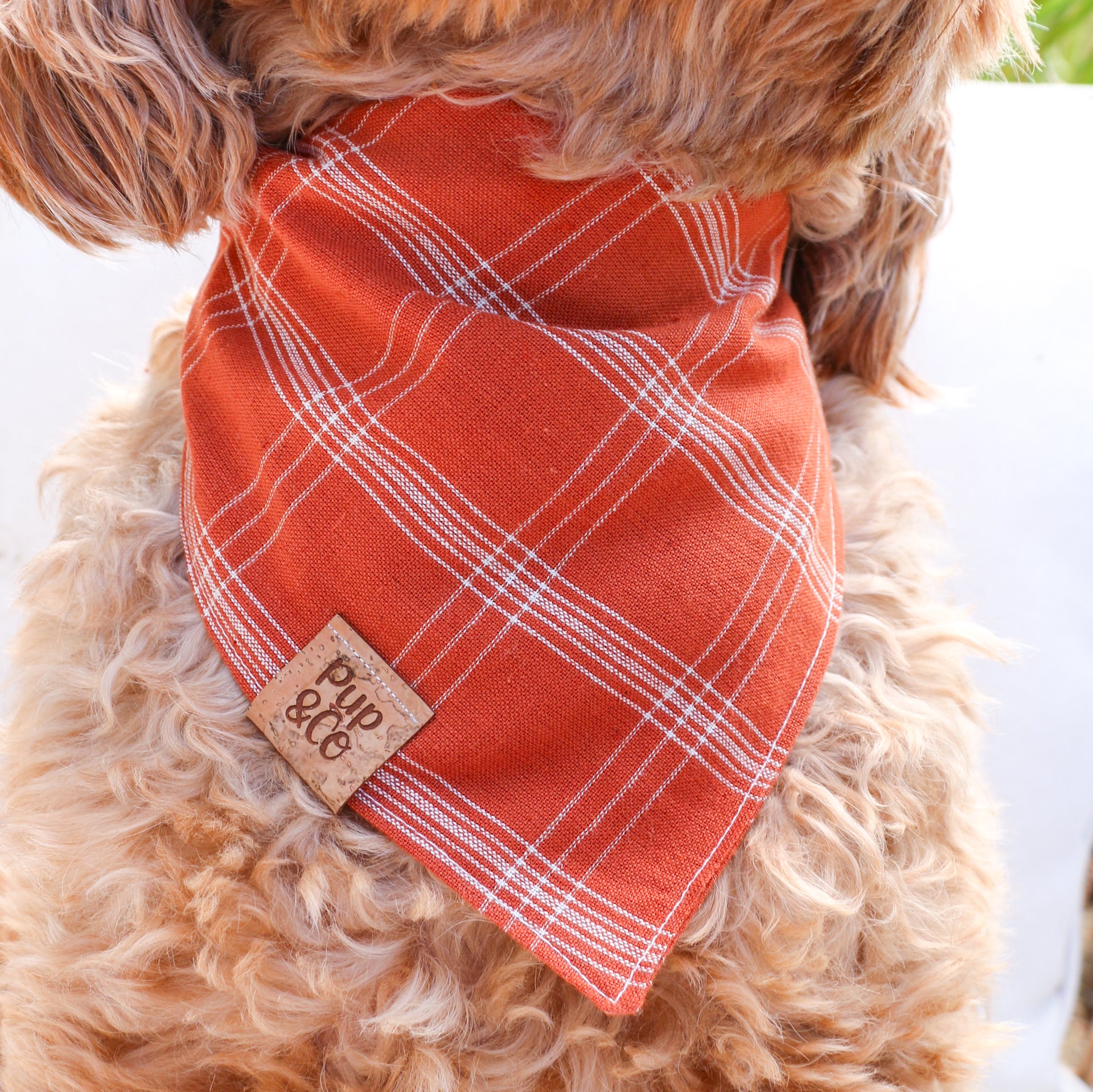 All of our bandanas are handmade with love from Arizona and quality assurance checked by our puppy Goldie. Our bandanas are triangle in shape and are meant to be knotted at the back around your pups neck or snapped. Please check out our size guide to find the perfect fit for your pup. This bandana comes with our custom Pup & Co. cork label.