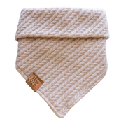 Measure your pup's neck before purchasing to ensure the proper sizing and fit. If your pup is fluffier or between sizes, consider sizing up for the best fit. If the bandana is a bit larger, fold down the top end as many times as necessary before tying it on. All of our bandanas come with an extra 3-4 inches of fabric from the "Up to # Neck" size to ensure the best knot when tying your bandana. Or we have the option to snap to secure the bandana. You could also tie the bandana once and snap to be extra secure.
