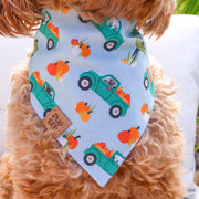 Measure your pup's neck before purchasing to ensure the proper sizing and fit. If your pup is fluffier or between sizes, consider sizing up for the best fit. If the bandana is a bit larger, fold down the top end as many times as necessary before tying it on. All of our bandanas come with an extra 3-4 inches of fabric from the "Up to # Neck" size to ensure the best knot when tying your bandana. Or we have the option to snap to secure the bandana. You could also tie the bandana once and snap to be extra secure.