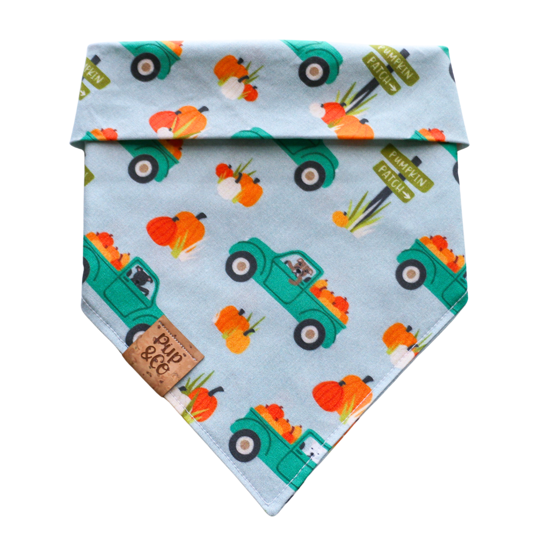 All of our bandanas are handmade with love from Arizona and quality assurance checked by our puppy Goldie. Our bandanas are triangle in shape and are meant to be knotted at the back around your pups neck or snapped. Please check out our size guide to find the perfect fit for your pup. Every bandana is 100% cotton and comes with our Pup & Co. label.