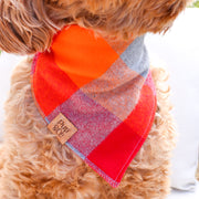 Measure your pup's neck before purchasing to ensure the proper sizing and fit. If your pup is fluffier or between sizes, consider sizing up for the best fit. If the bandana is a bit larger, fold down the top end as many times as necessary before tying it on. All of our bandanas come with an extra 3-4 inches of fabric from the "Up to # Neck" size to ensure the best knot when tying your bandana. Or we have the option to snap to secure the bandana. You could also tie the bandana once and snap to be extra secure.