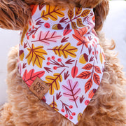Measure your pup's neck before purchasing to ensure the proper sizing and fit. If your pup is fluffier or between sizes, consider sizing up for the best fit. If the bandana is a bit larger, fold down the top end as many times as necessary before tying it on. All of our bandanas come with an extra 3-4 inches of fabric from the "Up to # Neck" size to ensure the best knot when tying your bandana. Or we have the option to snap to secure the bandana. You could also tie the bandana once and snap to be extra secure.