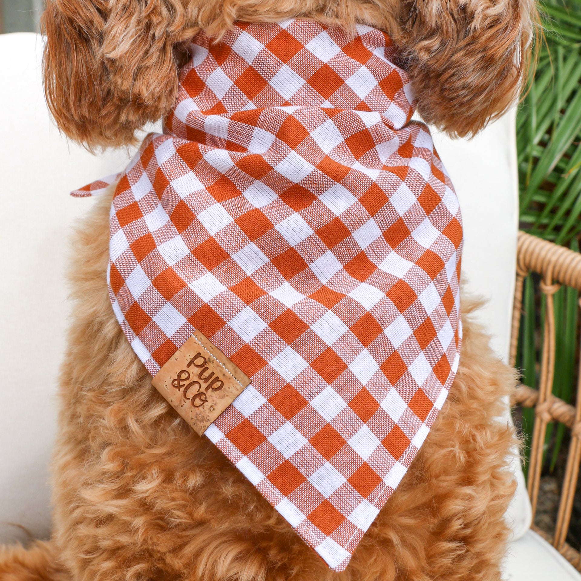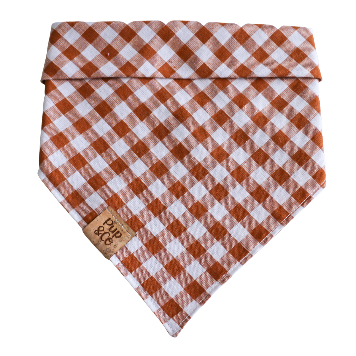 All of our bandanas are handmade with love from Arizona and quality assurance checked by our puppy Goldie. Our bandanas are triangle in shape and are meant to be knotted at the back around your pups neck or snapped. Please check out our size guide to find the perfect fit for your pup. This bandana comes with our custom Pup & Co. cork label.