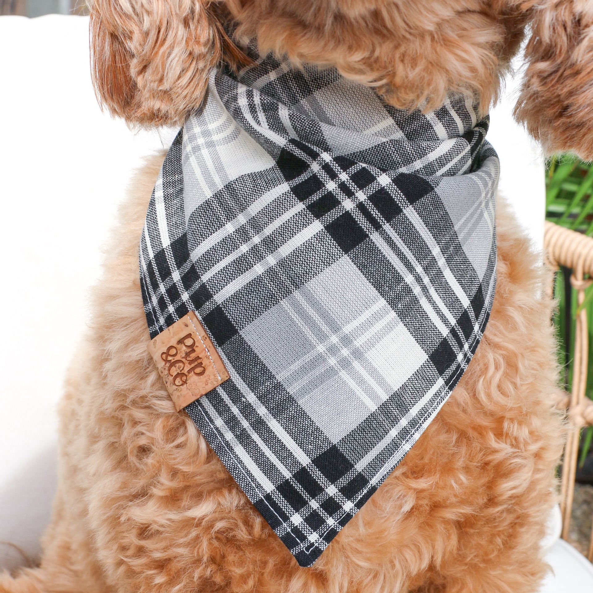 All of our bandanas are handmade with love from Arizona and quality assurance checked by our puppy Goldie. Our bandanas are triangle in shape and are meant to be knotted at the back around your pups neck or snapped. Please check out our size guide to find the perfect fit for your pup. This bandana comes with our custom Pup & Co. cork label.