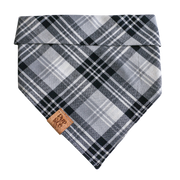 Measure your pup's neck before purchasing to ensure the proper sizing and fit. If your pup is fluffier or between sizes, consider sizing up for the best fit. If the bandana is a bit larger, fold down the top end as many times as necessary before tying it on. All of our bandanas come with an extra 3-4 inches of fabric from the "Up to # Neck" size to ensure the best knot when tying your bandana. Or we have the option to snap to secure the bandana. You could also tie the bandana once and snap to be extra secure.
