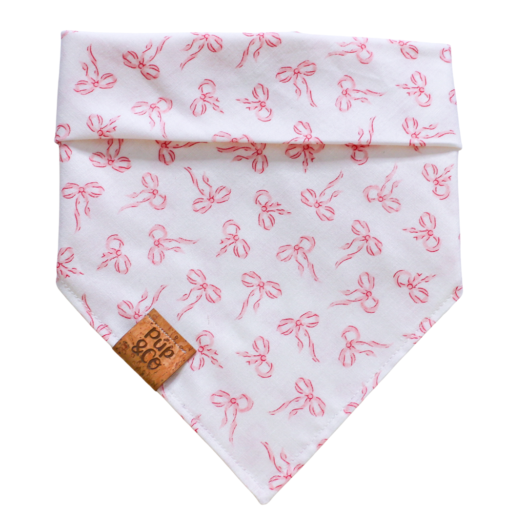All of our bandanas are handmade with love from Arizona and quality assurance checked by our puppy Goldie. Our bandanas are triangle in shape and are meant to be knotted at the back around your pups neck or snapped. Please check out our size guide to find the perfect fit for your pup. Every bandana is 100% cotton and comes with our Pup & Co. label.